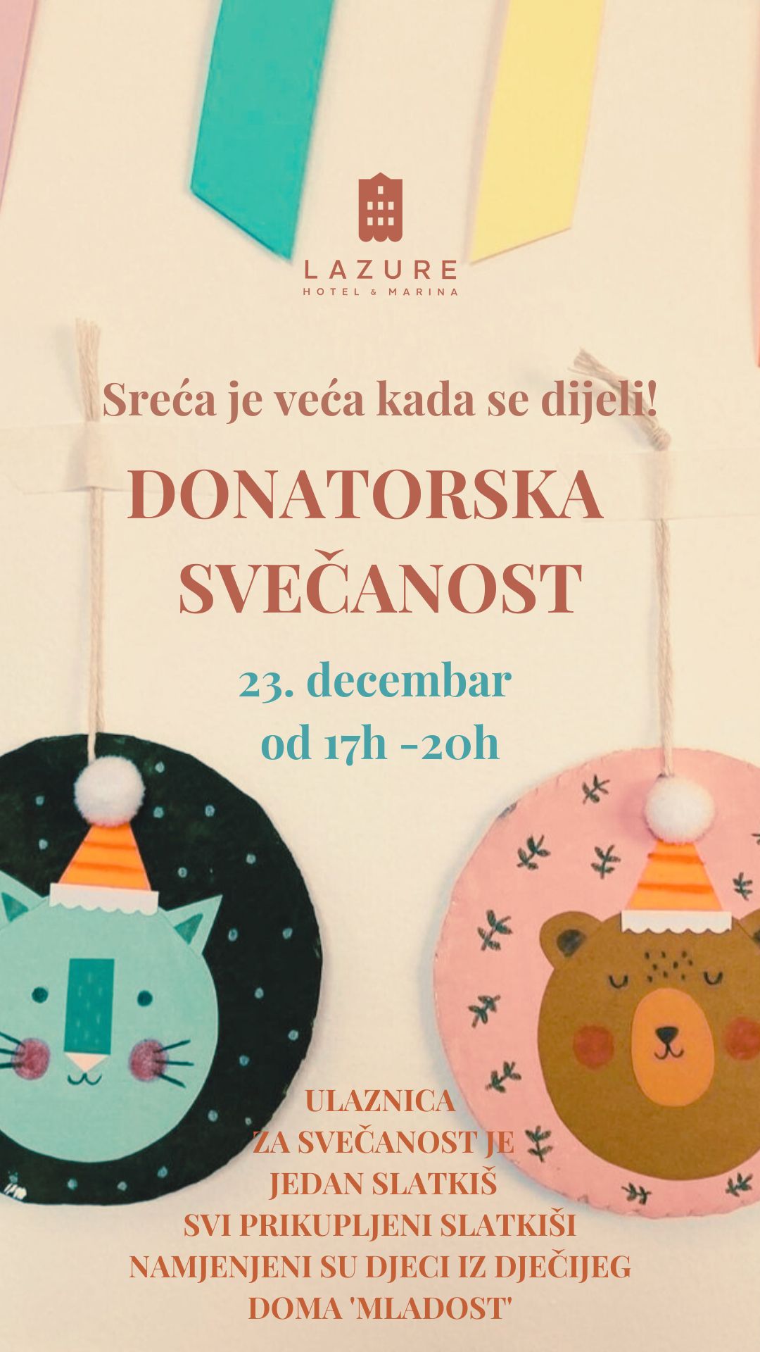 „Nadamo se da ćete nam ukazati čast svojim prisustvom i podrškom ovoj lijepoj inicijativi. Vaš doprinos će učiniti uspomenu na ovu godinu još ljepšom i srećnijom, jer sreća je doista veća kada se dijeli!“, poručuju iz Hotela Lazure i očekuju vas u subotu u 17 časova.