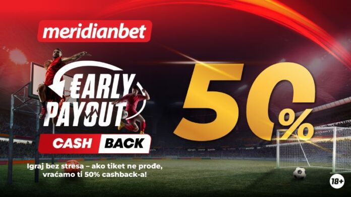 U periodu od 05. do 12. maja, na sajtu meridianbet.me, aktivna je promocija „Early Payout – 50% cashback“.