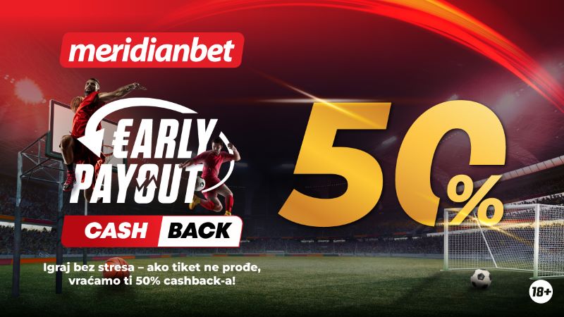 Vrlo jednostavno: odigraj tiket koji sadrži bar jedan meč iz Early Payout ponude, i ako tiket ne prođe – Meridianbet ti poklanja 50% cashback-a!