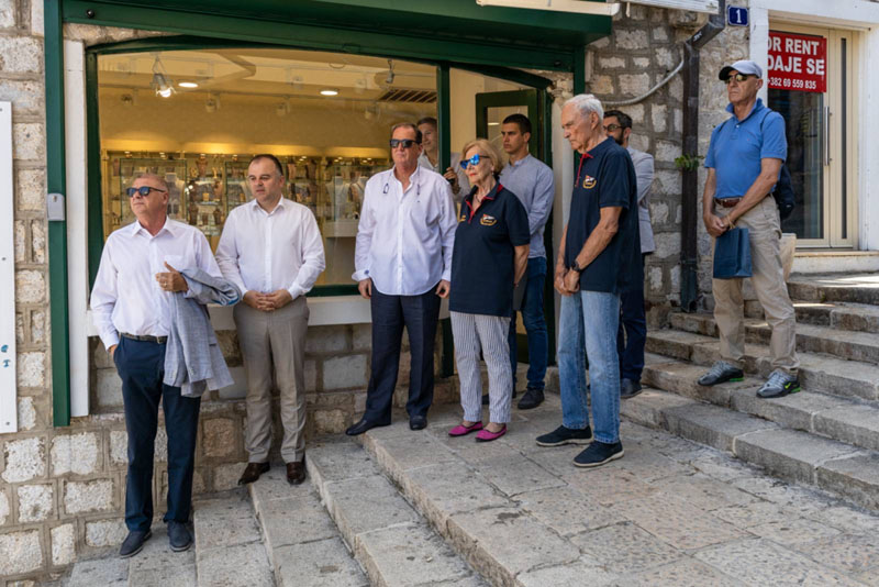 Uz najljepše želje slavljeniku, mažoretke i Gradska muzika Herceg Novi prodefilovali su od trga nad kojim se vijori zastava prema dijelu ulice na kojem je postavljena izložba, pozivajući prisutne da pogledaju fotografije koje svjedoče o stotinu godina najtrofejnijeg novskog sportskog kolektiva.