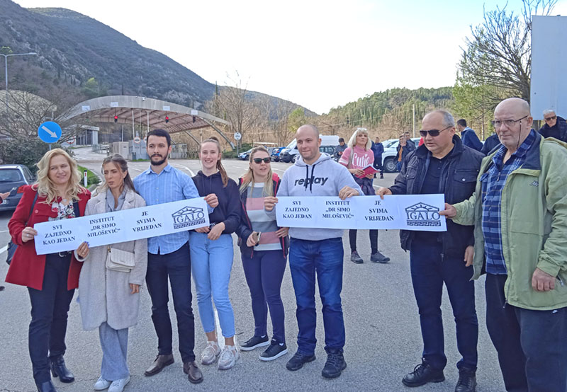 Više stiotina radnika i građana Herceg Novog, kolege, predstavnici izvršne i zakonodavne vlasti, radnici Telekoma, blokiralo je Granični prelaz Debeli brijeg u znak protesta zbog neodgovornog odnosa Vlade i njenih Ministarstava prema Institutu Dr Simo MIlošević. Ukoliko Vlada hitno ne ispuni pet skupštinskih zaključaka za rješavanje statusa Instituta najavljeni su protesti u Podgorici.