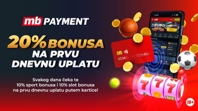 Naime, na prvu dnevnu uplatu karticom, Meridianbet poklanja čak 20% bonusa!