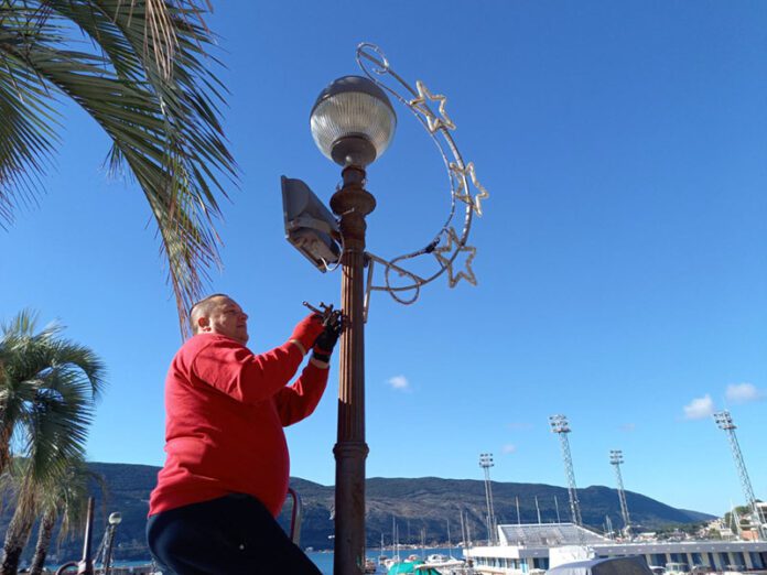 Herceg Novi polako oblači novogodišnje ruho. Danas su radnici Komunalno stambenog počeli kićenje Škvera novogodišnjom dekoracijom.