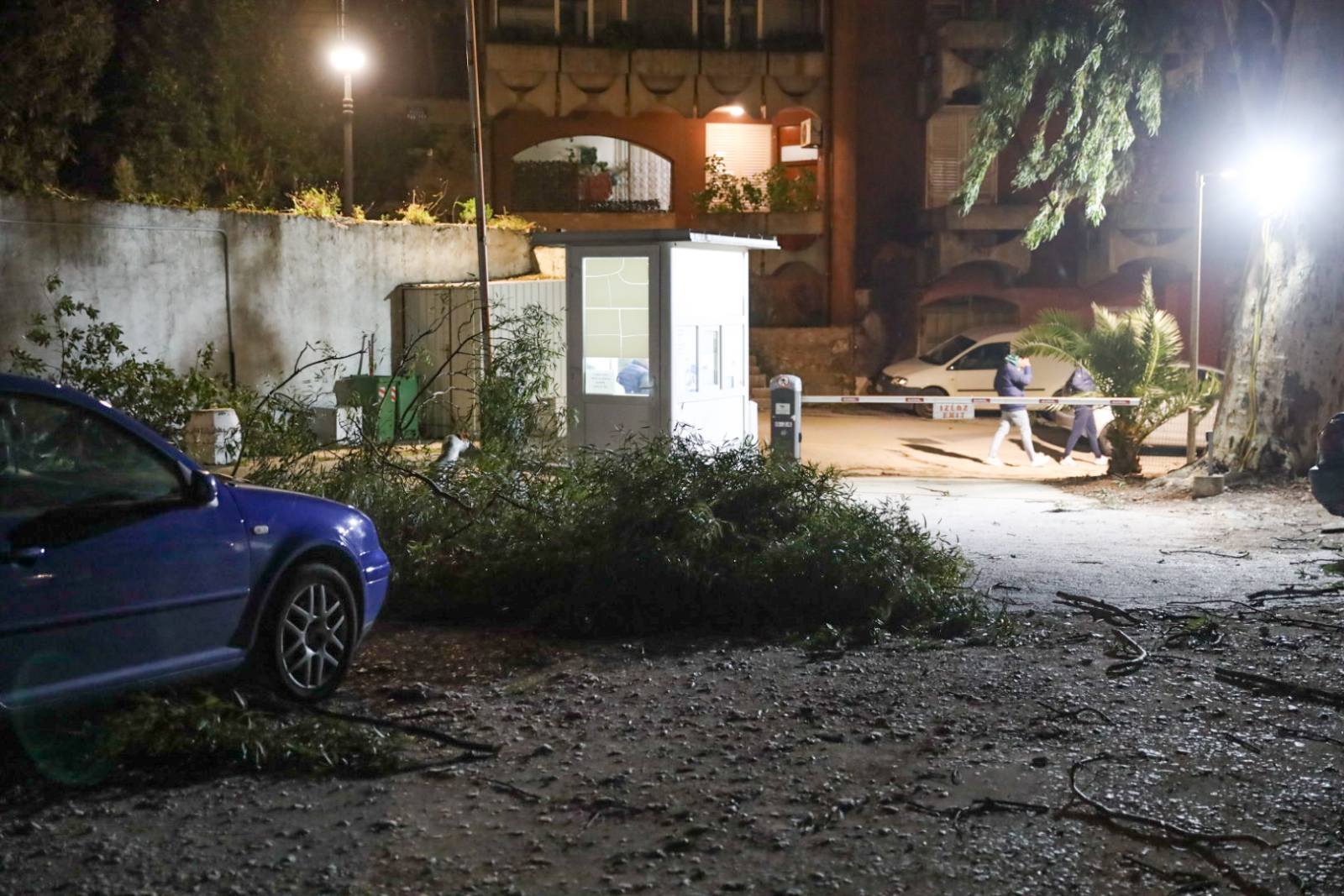 Na parkingu na bivšem Zanatskom jak vjetar oduvao je nekoliko grana koje su pale i oštetile nekoliko parkiranih automobila.