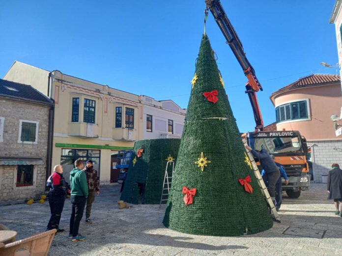 Radnici Komunalno stambenog jutros su na Trgu Nikole Đurkovića postavili jelku, čime se završava novogodišnje ukrašavanje grada.