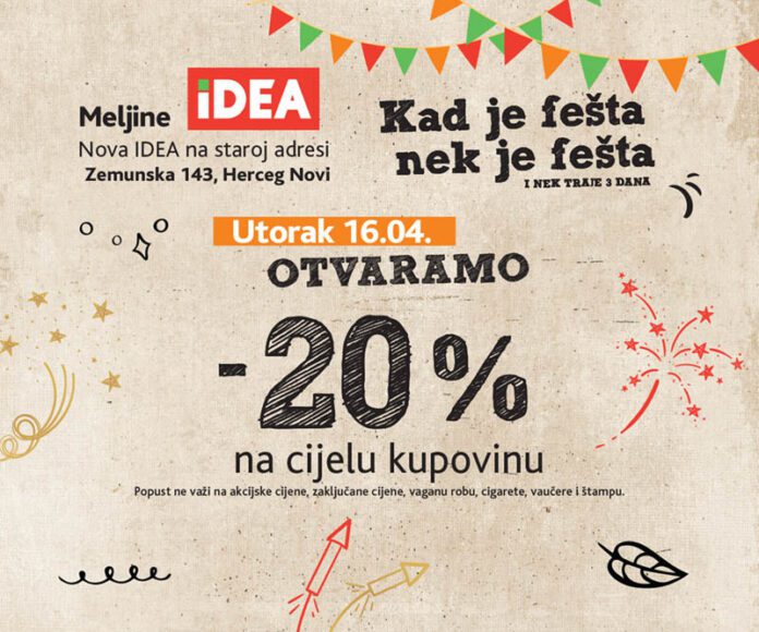 U Meljinama u Ulici Zemunska br. 143 potrošačima će u utorak, 16. aprila u 7.30h, svoja vrata otvoriti renovirana i moderno opremljena IDEA prodavnica.
