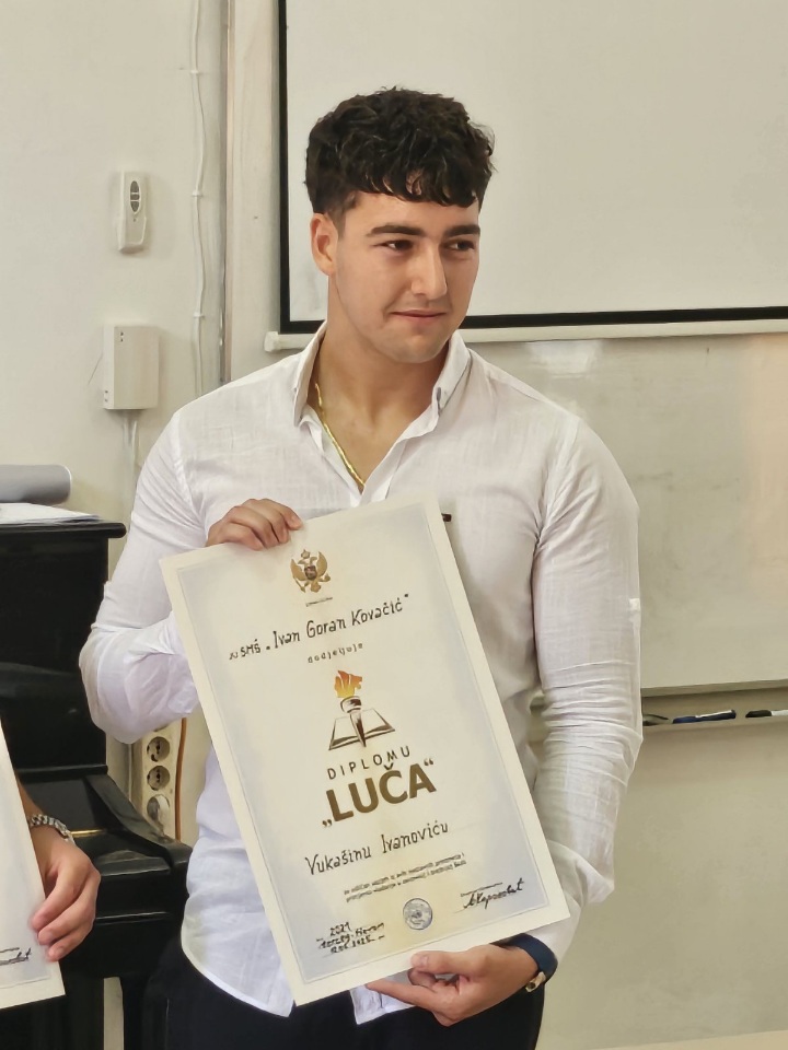Diploma »Luča« priznanje je koje se dodjeljuje učenicima osnovne i srednje škole koji postižu izuzetne rezultate u učenju i imaju dobro vladanje, a takvih je u hercegnovskoj opštini ove godinre 58. Od njih je 26 iz Srednje mješovite škole „Ivan Goran Kovačić“, a među njima šestoro najboljih, dobitnika „Luče“ 1. Oni su sa svim peticama i odličnim vladanjem završili osnovnu i srednju školu. Ponos su porodice, grada, države.