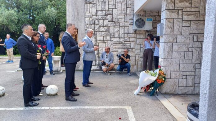 Tradicionalno je počast žrtvama odata minutom ćutanja polaganjem cvijeća na zgradu Centra bezbjednosti.