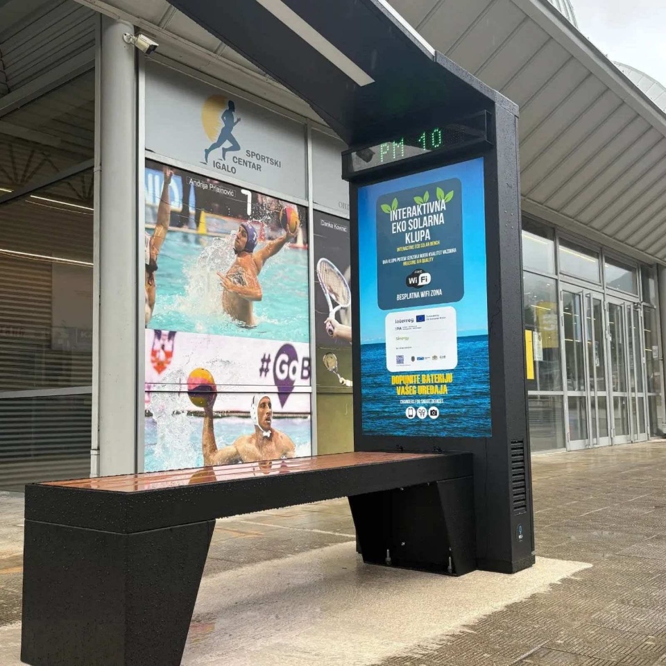 Postavljena je i interaktivna eko-pametna klupa, opremljena solarnim panelima, punjačima za mobilne uređaje, LED ekranom i meteorološkom stanicom.