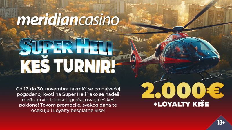 Super Heli u periodu od 17.11. do 30.11., zaista donosi brojna iznenađenja – svakog dana NEŠTO NOVO – i, najbolje za kraj – poklon 2000€ za čak 30 igrača.