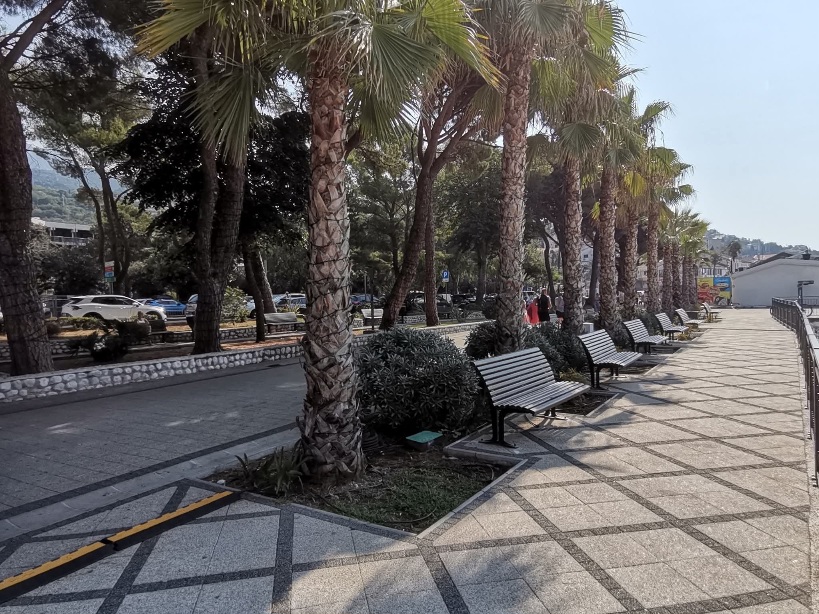 Postavljanjem mobilijara dodatno je unaprijeđen ambijent, te je posjetiocima omogućen prijatan prostor za predah uz drvored palmi, uz samu obalu mora.