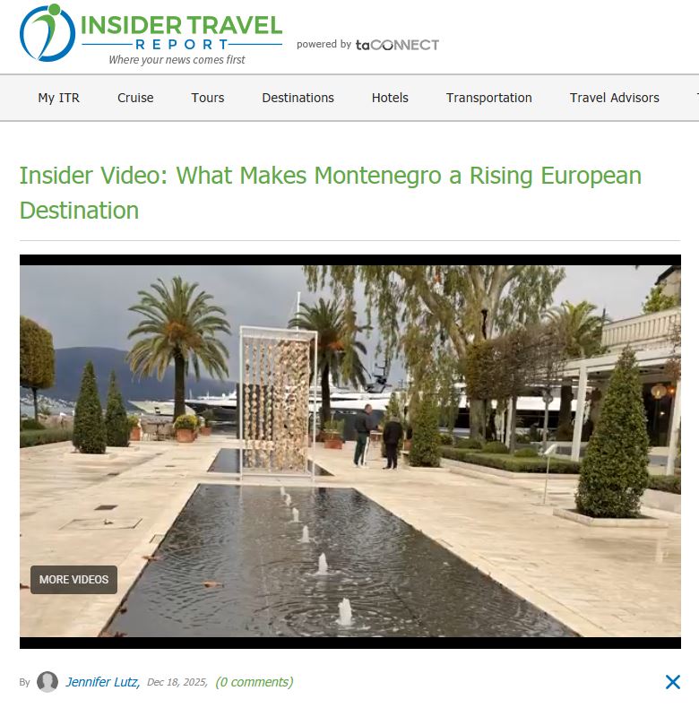 Krajem decembra prethodne godine objavljeni su afirmativni članci o Crnoj Gori u značajnom američkom mediju Insider Travel Report, koji broji više od 80 hiljada aktivnih pretplatnika. Objavljeni članci su rezultat aktivnosti Nacionalne turističke organizacije Crne Gore koja je ugostila novinarku iz Sjedinjenih Američkih Država, Jennifer Lutz, od 21. do 23. novembra.