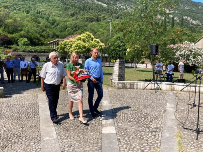 Predsjednik Skupštine opštine Herceg Novi, Ivan Otović, potpredsjednica Opštine Vesna Samardžić i predsjednik Opštinskog odbora SUBNOR-a 1941-1945 HercegNovi, Đoko Zloković položili su vijenac na spomenik palim borcima.