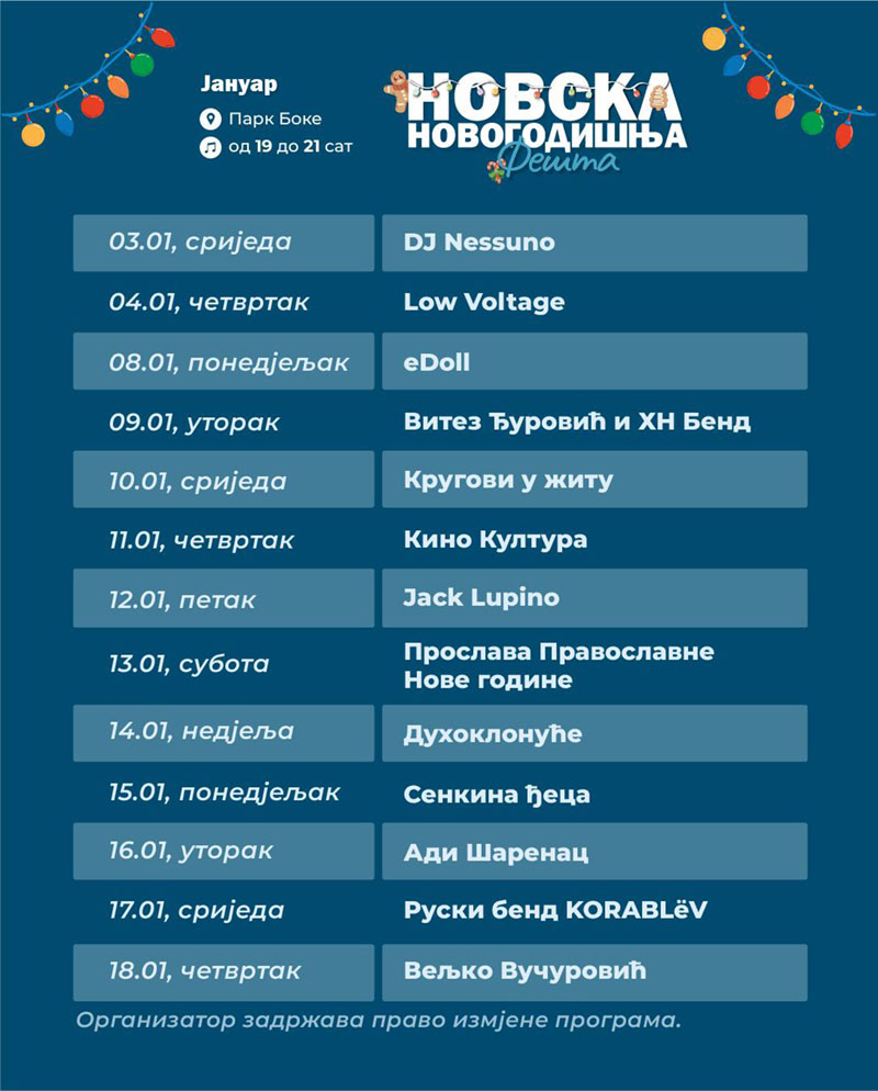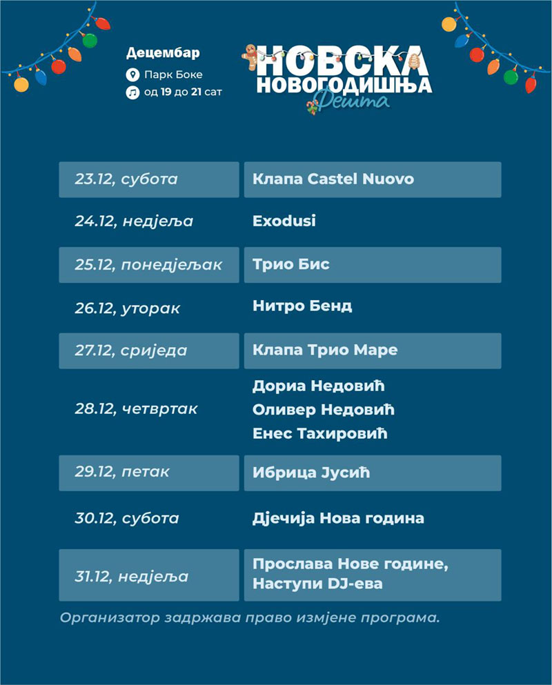 Organizatori programa su JUK Herceg Fest i Opština Herceg Novi.