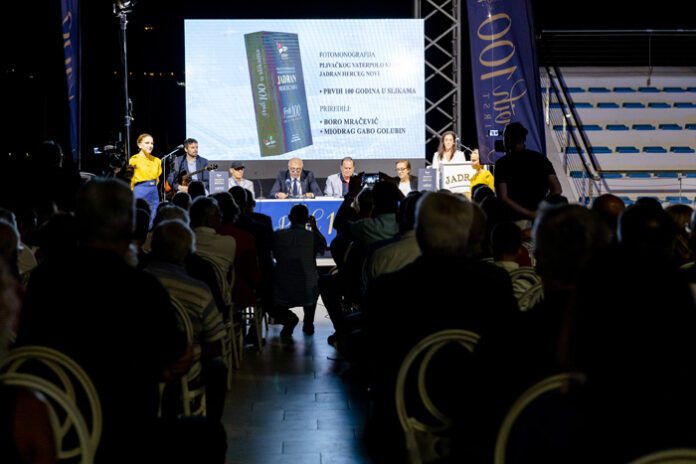 Na bazenu Jadran u gradskoj luci na Škveru sinoć je upriličena promocija foto monografije povodom 100 godina PVK Jadran.