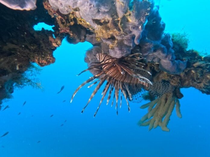 Hercegnovski ronioci iz kluba „Adriatic blue“su u Žanjicama, na olupini austrougarskog torpednog broda „Golesnica“, na dubini od 30 metara, uočili veći primjerak ribe lav (Pterois miles).
