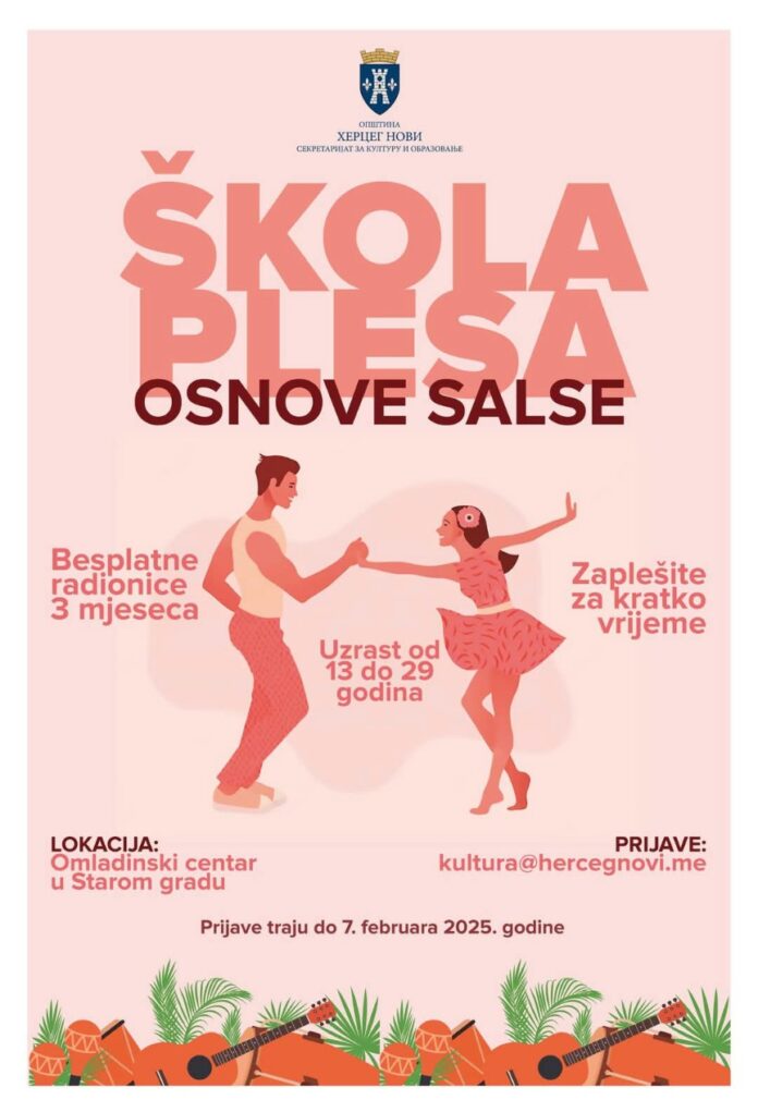 Mladi ljudi od 13 do 29 godina imaće priliku da na besplatnoj radionici tokom tri mjeseca nauče osnove salse. Časovi će biti u uređenoj plesnoj sali Omladinskog centra u Starom gradu.
