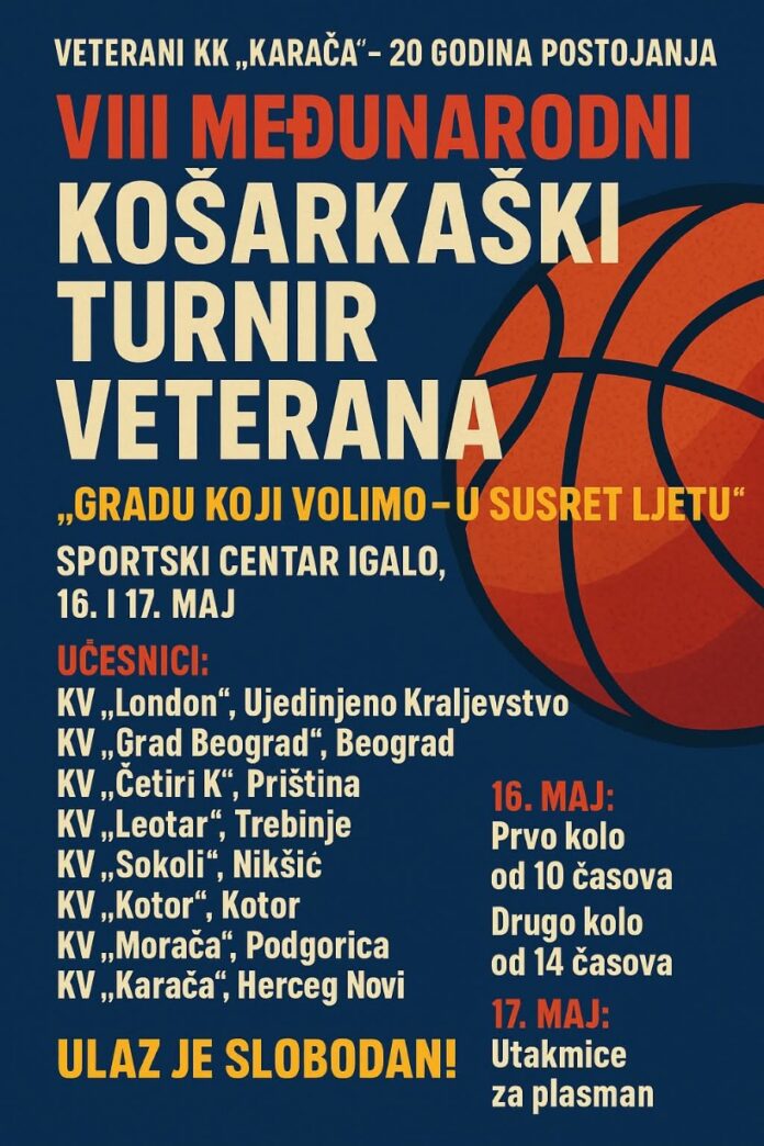 Osmi međunarodni košarkaški turnir veterana „Gradu koji volimo – u susret ljetu“ biće održan 16. i 17. maja u Sportskom centru Igalo.