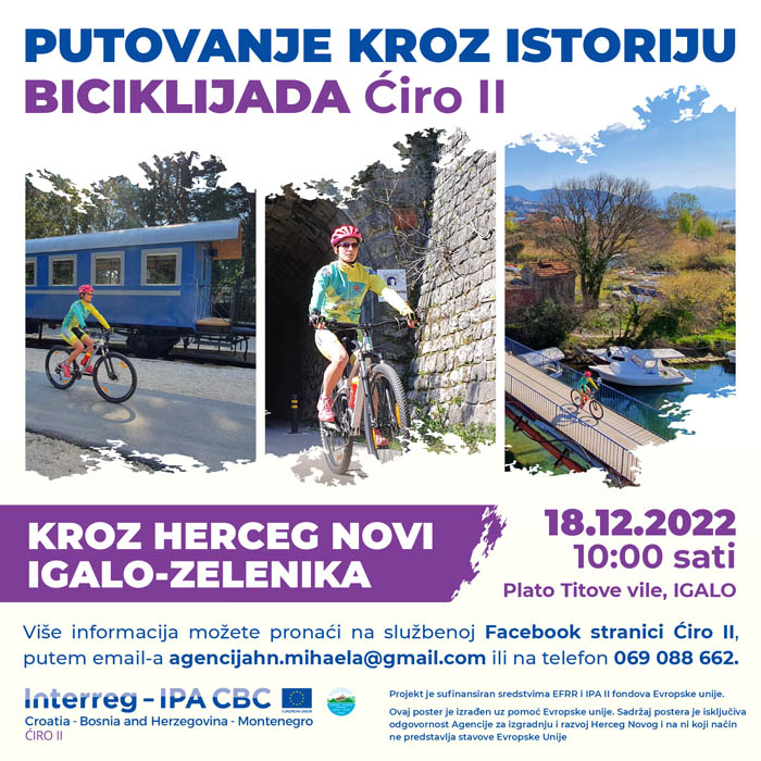 Biciklijada Ćirovom trasom na relaciji Igalo-Zelenika biće održana u nedjelju 18. decembra, sa početkom u 10:00 h na platou ispred Titove vile u Igalu.