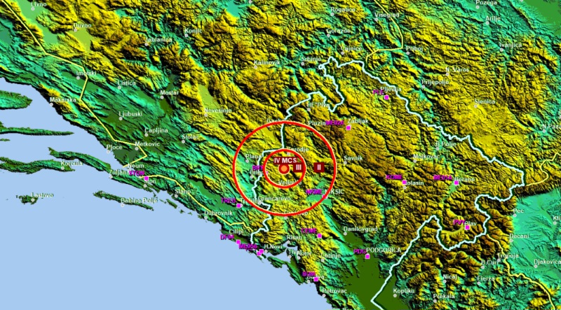 Jačina zemljotresa u hipocentru odgovara epicentralnom intenzitetu od V stepeni Merkalijeve skale.
