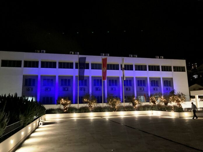 Zgrada Opštine Herceg Novi u plavoj svjetlosti